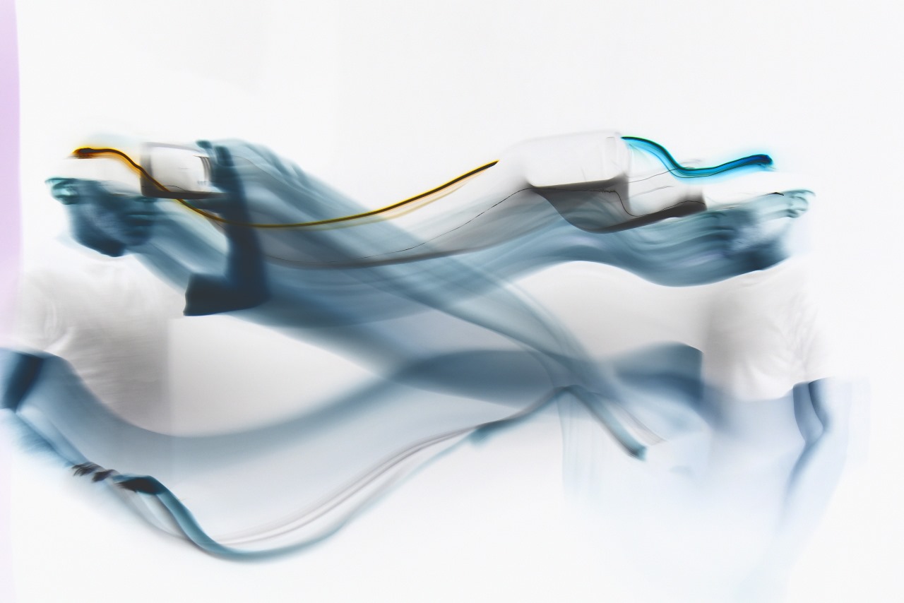 Inspired by the title of the biennale, I started experimenting with one of my favorite photography techniques, which is realized through stroboscopic light. It is the continuation of the photographic cycle made in 2017 entitled Vortexes. It often happens that in my creative process I deal with social topics that are closely related to my commitment as an artist and above all, as a person who interacts directly or indirectly with any phenomenon that appears during my journey. So it naturally happened with this series of artistic photographs, expressing my fluid thoughts on the subject of Artificial Intelligence: the hybrid future. That being the case, I do not attempt to delve deeply into the phenomenon, but rather try to capture moments of the interaction that occurs when dealing with AI through the process of light photography.